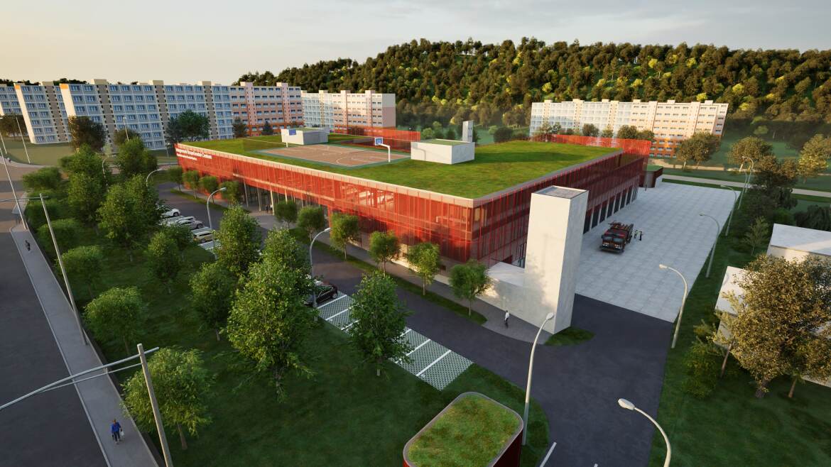 The integrated security center in Banská Bystrica brings together rescuers, firefighters and police in one area, making the coordination of interventions across the region more efficient. The design is built on the site of a former military unit and transforms the closed area into a clearly legible complex with a central atrium and a new layer of greenery. The architecture works with a restrained expression that corresponds to the importance of the function and at the same time responds sensitively to its urban surroundings.